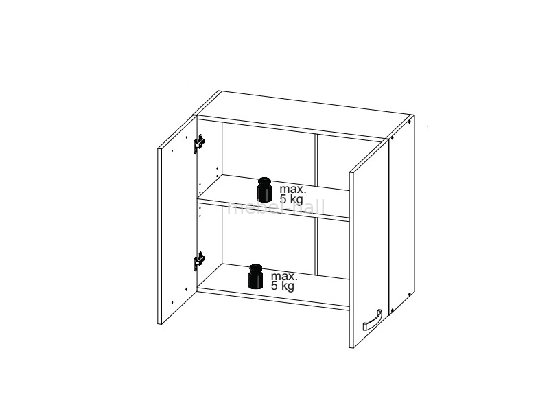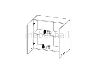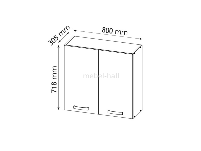 Закрытая верхняя секция в виде шкафчика с двумя дверцами В80 кухни Шарлотта с полкой.
