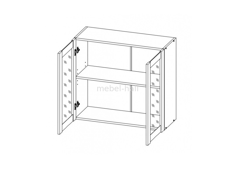 Закрытая верхняя секция в виде шкафчика с двумя стеклянными дверцами В80 витрина кухни Шарлотта с полкой.