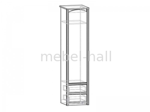 Пенал имеет одно закрытое отделение с полкой и штангой для вешалок, 2 выдвижных ящика.