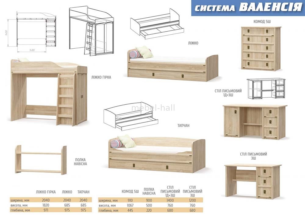Мебель Валенсия включает в себя большое количество идеально гармонирующих друг с другом модулей для создания идеального интерьера гостиной, кабинета, прихожей или детской.