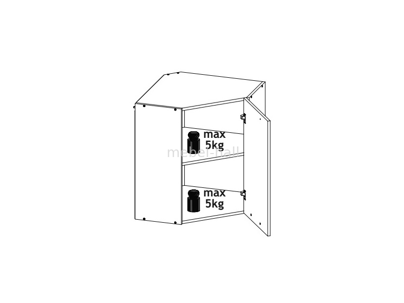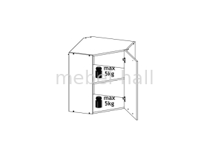 Угловой закрытый верхний шкафчик 60х60 Шарлотта, внутри расположена одна полка.