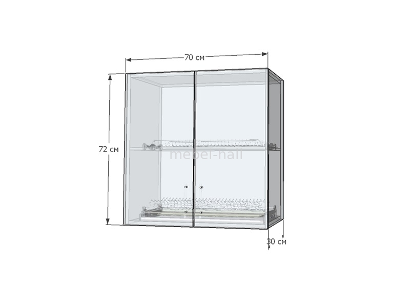 Закрытый верхний шкафчик с двумя дверьми ВС-70х72 с сушкой внутри.