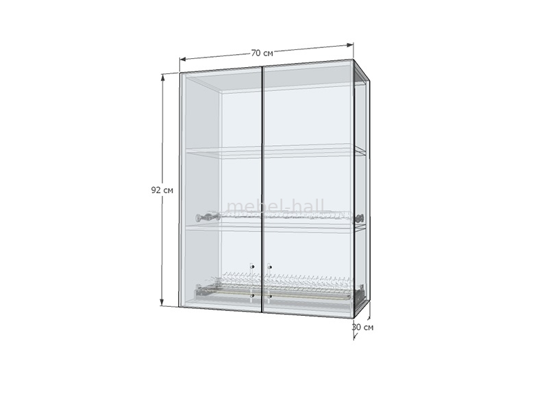 Закрытый верхний шкафчик с двумя дверьми ВС-70х92 с сушкой внутри.