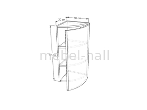 Закрытый угловой верхний шкафчик витрина ВКЗЗР-30х92 В с полками внутри.