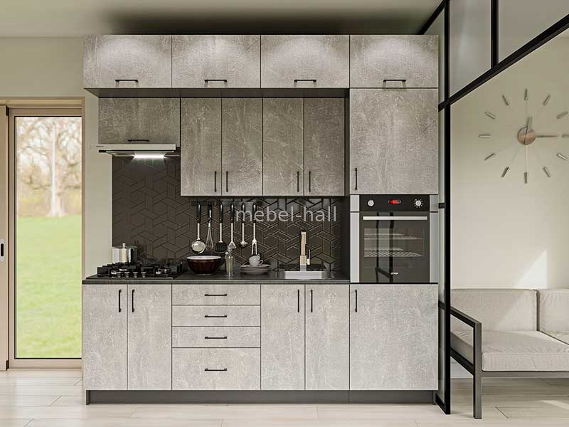 Кухня Платинум Гарант имеет необходимую фурнитуру для самостоятельной сборки и установки. Верхние секции с вертикальным открытием двери - газовыми подъемниками. Кухонные секции могут быть оснащены тремя вариантами фурнитуры: