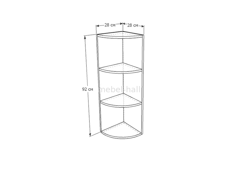 Открытый угловой верхний шкафчик ВКЗВР-28х92 с полками.