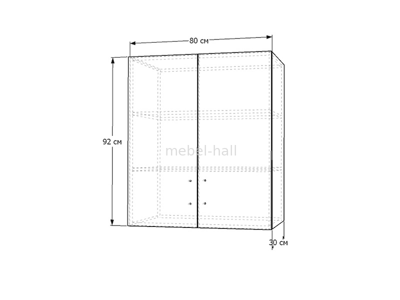 Закрытый верхний шкафчик с двумя дверьми В-80х92 с полкой внутри.