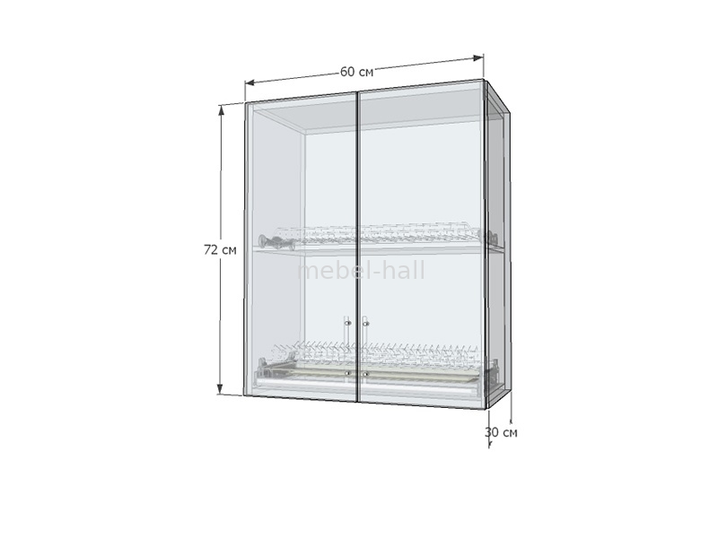 Закрытый верхний шкафчик витрина с двумя дверьми ВС-60х72 В с сушкой внутри.