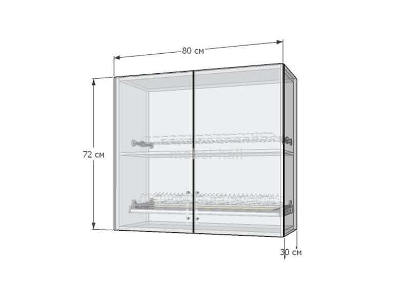 Закрытый верхний шкафчик витрина с двумя дверьми ВС-80х72 В с сушкой внутри.