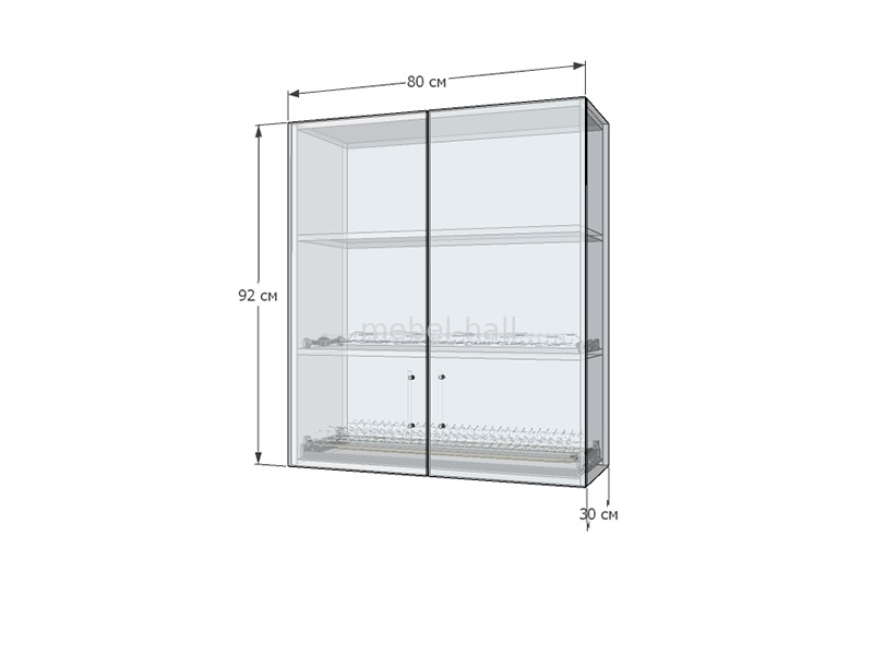Закрытый верхний шкафчик витрина с двумя дверьми ВС-80х92 В с сушкой внутри.