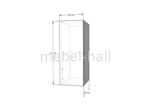 Закрытый верхний шкафчик витрина В-30х72 В с полкой внутри.