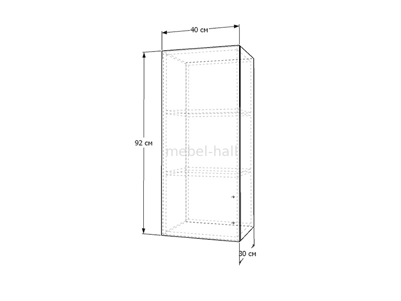 Закрытый верхний шкафчик витрина В-40х92 В с полкой внутри.