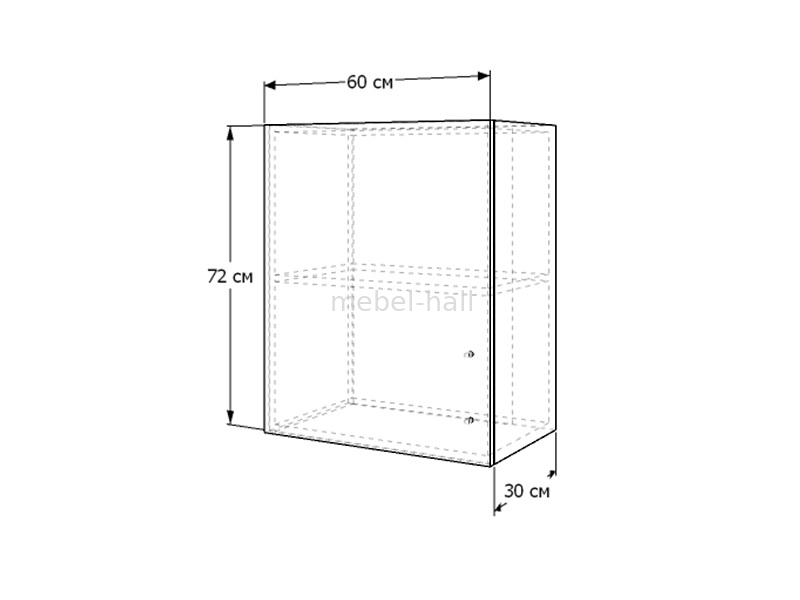 Закрытый верхний шкафчик витрина В-60х72 1В с полкой внутри.