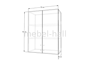 - верхние секции высотой 72 см (высота пеналов 214 см) и 92 см (высота пеналов 234 см), глубиной 30 см, без паза для ДВП;