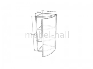 Закрытый угловой верхний шкафчик витрина ВКЗЗР-30х92 В с полками внутри.