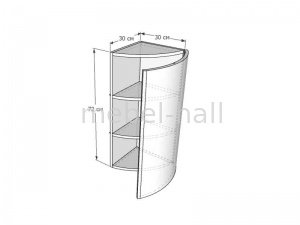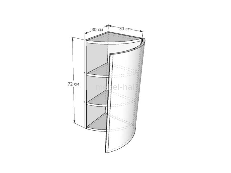 Закрытый угловой верхний шкафчик ВКЗЗР-30х72 с полками внутри.