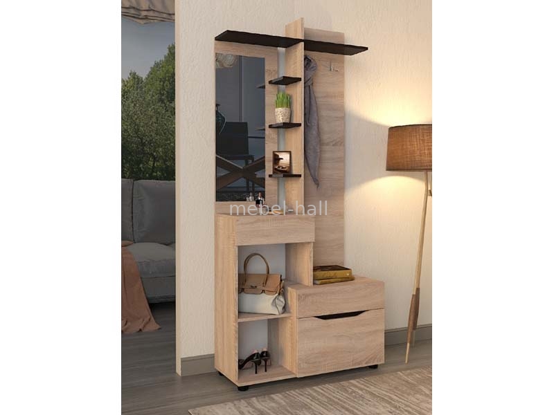 Компактные размеры вешалки, наличие крючков и полок, а также зеркала и отсека для обуви, позволят разместить ее в небольшой прихожей.