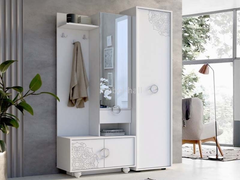 | Особенности: | С полками, С отсеком для обуви, С шкафом, С крючками, С шухлядами, На ножках, С зеркалом |
