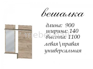 Вешалка с зеркалом 900 х 140 х 1110 h Брайт ДСП Мастер Форм Дуб Сонома левосторонняя