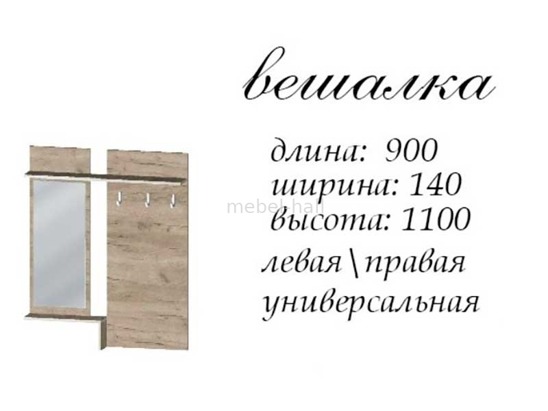 Вешалка с зеркалом 900 х 140 х 1110 h Брайт ДСП Мастер Форм Дуб Сонома правосторонняя
