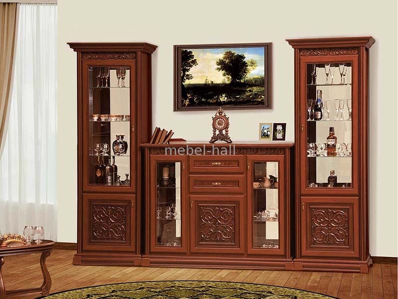 Витрина 1Д ЛАЦИО - красивая витрина в гостиную украинского производителя Світ Меблів. Выполнена в классическом стиле. Фасады украшены патиной, что придает мебели эффект старения, и оригинальными ручками.