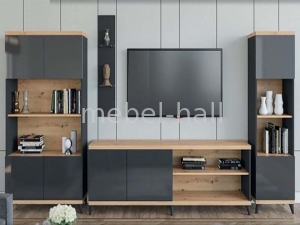 Витрина шкаф 2 двери со стеклом в гостиную ТРЕВИЗО глянцевые фасады без ручек ДСП Антрацит и Дуб артизан