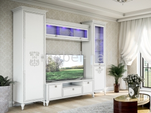 Витрина ВЕРОНИКА СВІТ МЕБЛІВ изысканная мебель для гостиной, сочетающая в себе элегантность и функциональность. Белые лаковые фасады, украшенные художественной печатью, массивные карнизы, изогнутые ножки и квадратные металлические ручки, придают элегантности и утонченности. Витрина оборудована прозрачным стеклом с рисунком и комплектуется подсветкой. Благодаря белоснежным фасадам, визуально расширяющим пространство, изделия модульной гостиной Вероника подойдут для обустройства гостиной любого размера. Такая мебель станет не только украшением дома, но и подчеркнет утонченный вкус ее обладателей.
