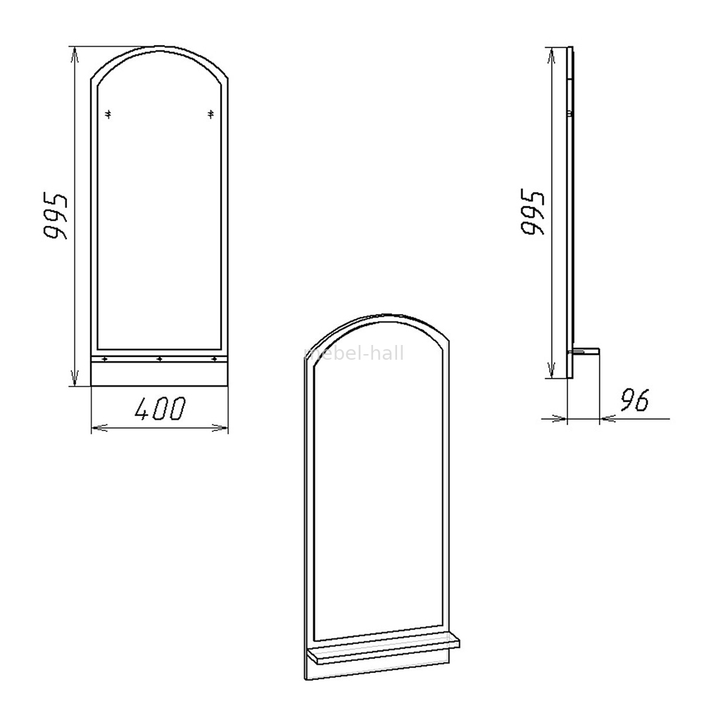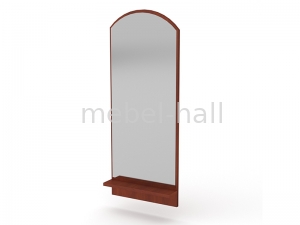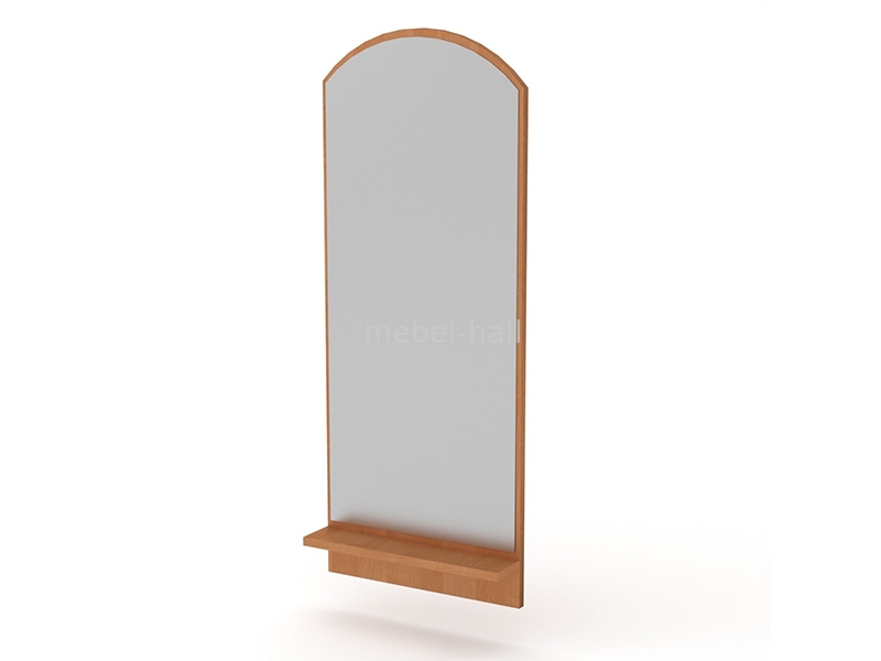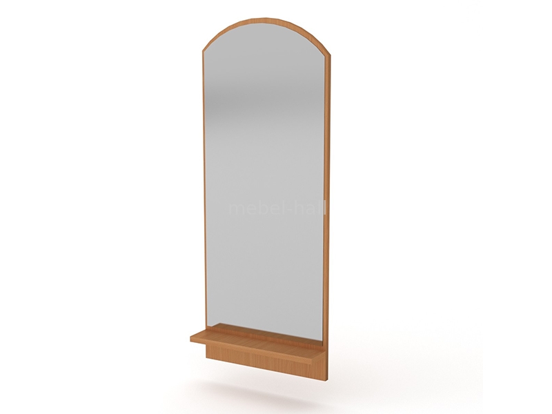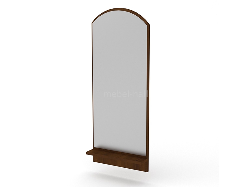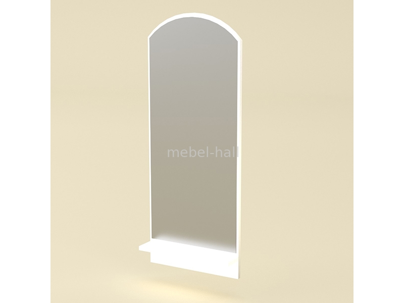 Зеркало прямоугольной формы с закругленным верхом и полочкой для мелких предметов удобно для размещения в ванной или прихожей.