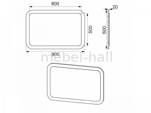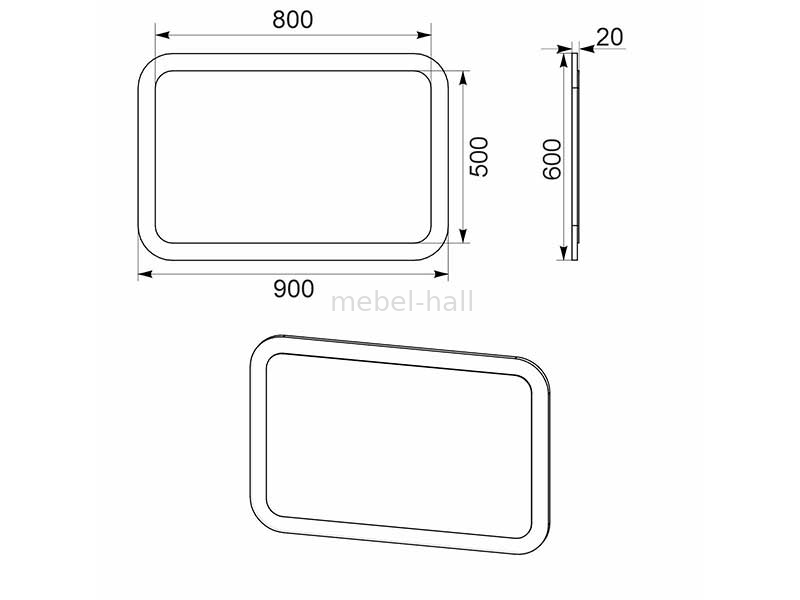 Зеркало прямоугольной формы с закругленным углами для размещения в ванной или прихожей.