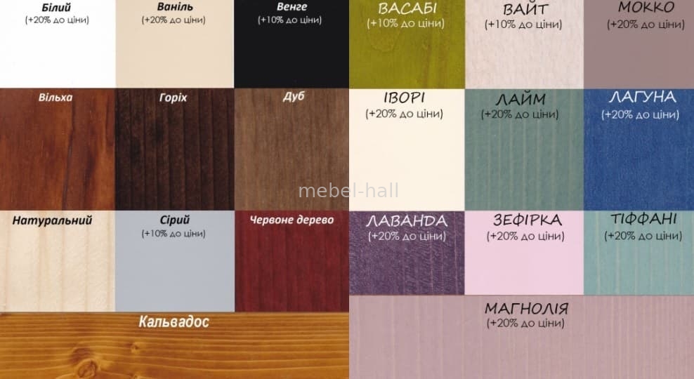 Цена изделия на сайте указана в цвете: Дуб, кальвадос, Красное Дерево, Натуральный, Ольха, Орех.