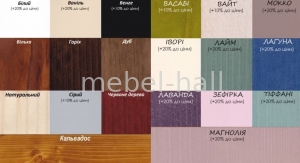 При комбинации цветов добавляется доплата 5-30%, в зависимости от выбранных цветов (начисляется индивидуально).