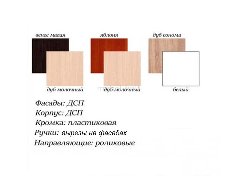 Корпус выполнен из ламинированного ДСП Венге Магия, Дуб Сонома или Яблоня.