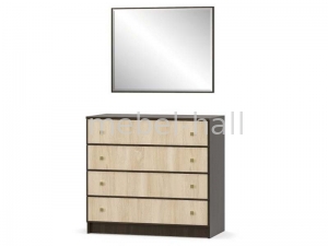 Зеркальное полотно расположено на ламинированном ДСП в цвете Венге Темный.