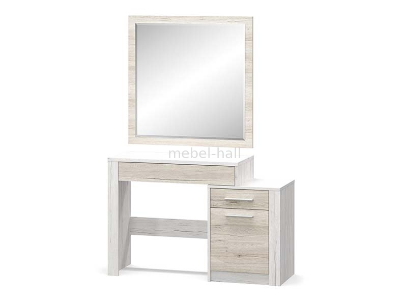 Зеркальное полотно расположено на ламинированном ДСП в цвете Карпатия Отбеленный.