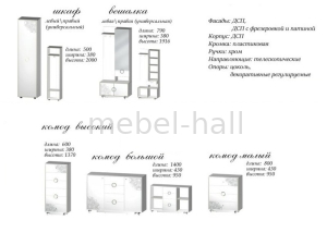 Мебель Нимфа включает в себя несколько идеально гармонирующих друг с другом модулей для создания идеального интерьера гостиной или прихожей.