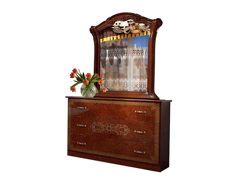 Фасад зеркала отлакированный в цвете Пино Орех Лак + Декоративная Резьба.